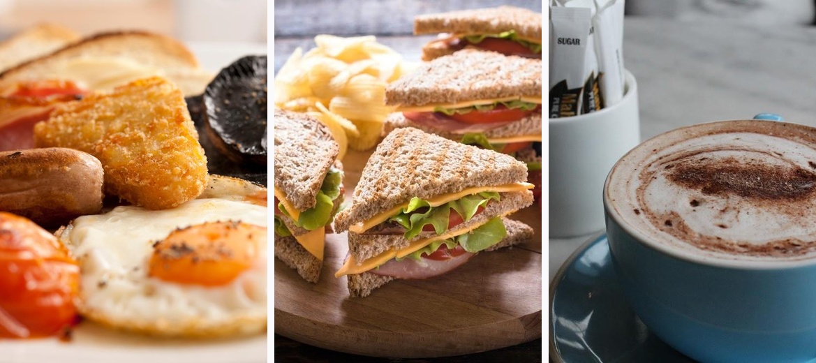 The Full English Breakfast delivers a hearty start to the day while the Chicken With Sweet Peppers & Mozzarella wrap is a popular lunch choice. Don't forget to save room for the Chocolate Brownie & Vanilla Ice Cream dessert. It's a crowd favorite!